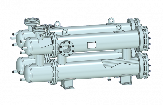 Охладитель конденсата (воды) по конструктиву представляет собой кожухотрубчатый теплообменник горизонтального или вертикального типа, состоящий из корпуса, трубной системы, съемных камер. Трубная система состоит из трубных досок с прямыми гладкими трубками из латуни или черной стали. В охладителях ОВ-40М и ОВ-150-3А трубные пучки состоят из U-образных труб.
